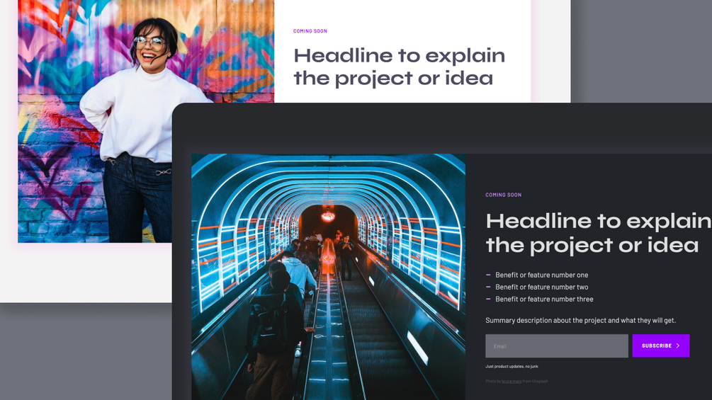 This is a ‘coming soon’ signup page template for project ideas.